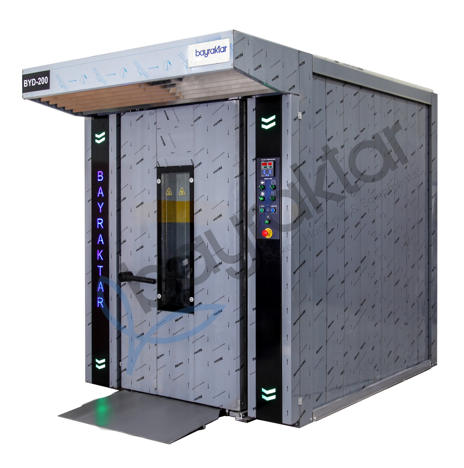 Döner arabalı ekmek fırını, özellikle fırıncılık sektöründe büyük ölçekli ekmek ve unlu mamul üretimi için kullanılan, pişirme tepsilerinin veya arabalarının fırın içinde dönerek ısıya maruz kaldığı bir fırın türüdür. Bu sistem, ürünlerin her tarafının eşit ve homojen bir şekilde pişmesini sağlar.
